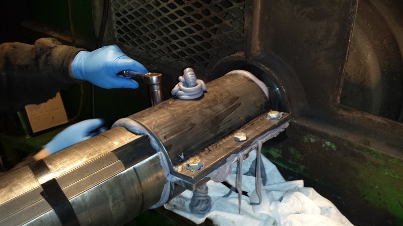 The mill was facing a lengthy and expensive procedure to fix this shaft. Standard procedure is to bring in a crane, remove a portion of the mill roof, lift the entire chipper disc with the crane, remove the shaft, ship the shaft to a repair facility to be welded and machined, then ship the shaft back, reassemble the chipper disc and lower it back into the building using the crane and then re-install the roof. This takes most of a week and would have cost them $13,500.00. No more than $150.00 of Belzona products were used for this repair and it was completed in less than a weekend. This repair has been in place for over one year and is still in 100% working condition, proving the longevity of these repairs.