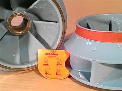 Application was carried out in accordance with Belzona Know-How System leaflet CEP-10. Original profiles were restored with Belzona 1111 before applying two coats of Belzona 1341 to provide future erosion corrosion protection to the impellers.