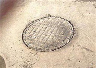 Valve well cover ring seat, located on a busy road.