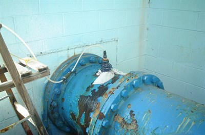 Main effluent line operating at 35psi could not be shut down since plant already operating above normal capacity.