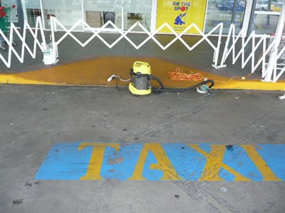 Problem: The concrete slab, adjacent to the ramp for the taxi stand, had sunk and created a step that had become a trip hazard. This had also made wheelchair access difficult.