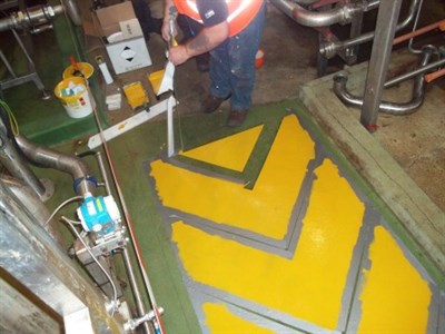 Application was carried ot in accordance with Belzona Know-How System Leaflet FPA-8. Belzona® 4131 applied to level floor area before applying Belzona® 4411 grip system.