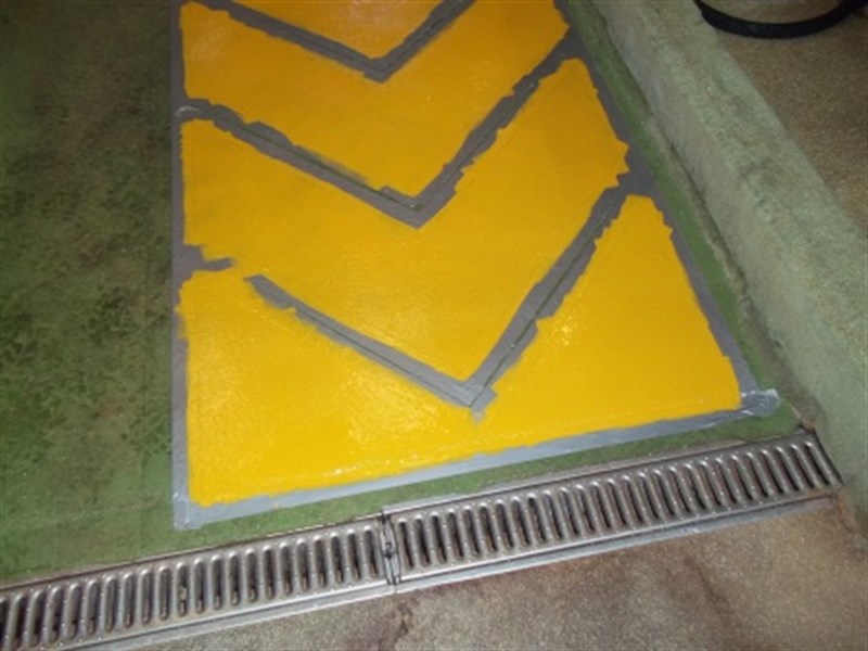 When routine maintenance was carried out they would step out of a small bund with wet feet. Belzona® 4131 ability to be feather edged allowed easy levelling of the walkway. The yellow Belzona® 4411 was chosen as both a positive grip system and as a visual aid.
