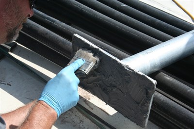 The IFU for the Belzona 1111 was followed. The MBX Bristle Blaster was used to prepare the tank. A grinder with a coarse wheel was used to prepare the plates. Non-chlorinated cleaner was used to clean the surfaces prior to the application.