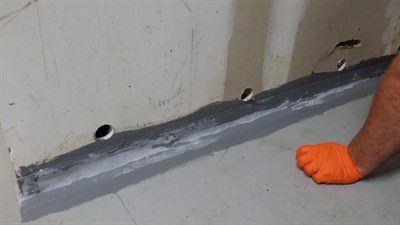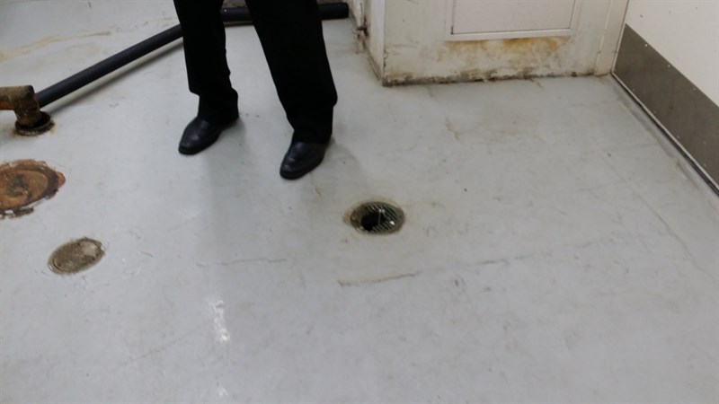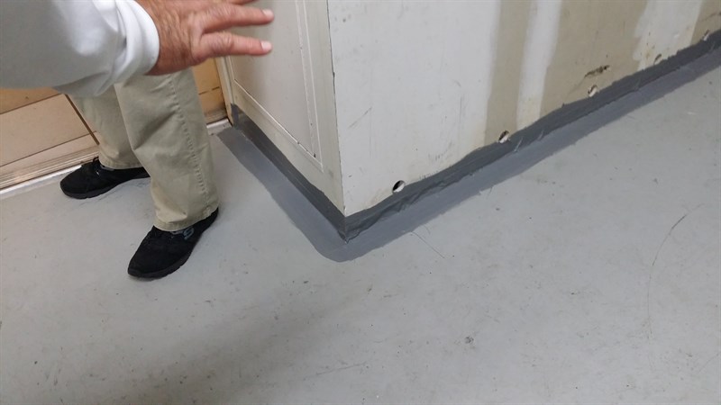 Problem: Storm water drain backing up into the air handler room adjacent to rental offices on the lower level of the main terminal of the airport. This storm/waste water had caused thousands of dollars in damages and they wanted something to prevent it from seeping into the adjacent offices.