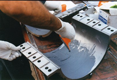 The application was carried out in accordance with Belzona Know-How System Leaflet MPT-2. A former was built in the machine shop and tabs were welded to center it on the "shaft".