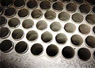 Problem: Erosion / corrosion of the tube sheet due to hot caustic black liquor at approximately 185ºF and galvanic corrosion between the stainless steel tubes and mild steel tube face.