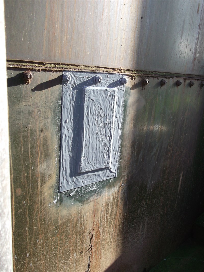 Problem: Tank was suffering from a through wall corrosion at the lowest panel level. The tank could not be taken off line due to demand and any repairs would have to be carried out without hot works or the use mechanical equipment due to the risk of sparks.