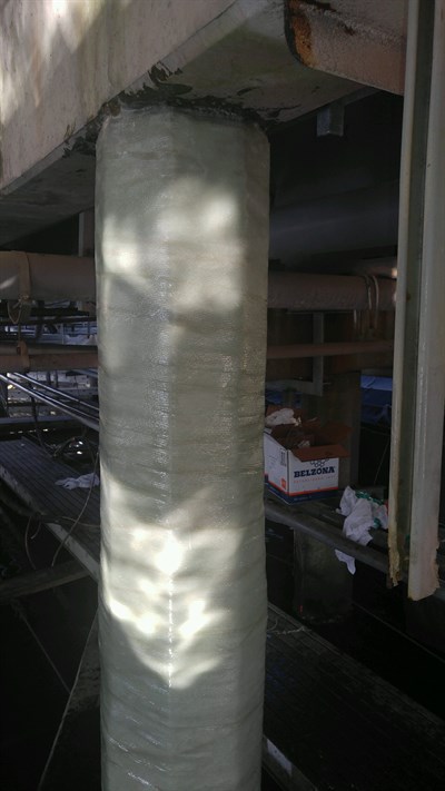 4. Pile encapsulated with Belzona 4151/9371 composite wrap.