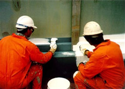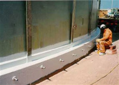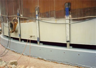 Belzona application creates a flexible,waterproof but microporous seal at junction of tank and base to provide long-term corrosion protection.