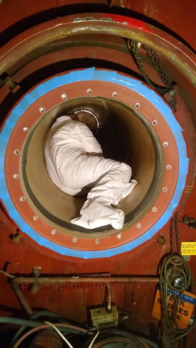Problem: The U.S. Navy required superior protection against erosion and corrosion in the non-bearing area of the stern tube when the ship was dry docked.