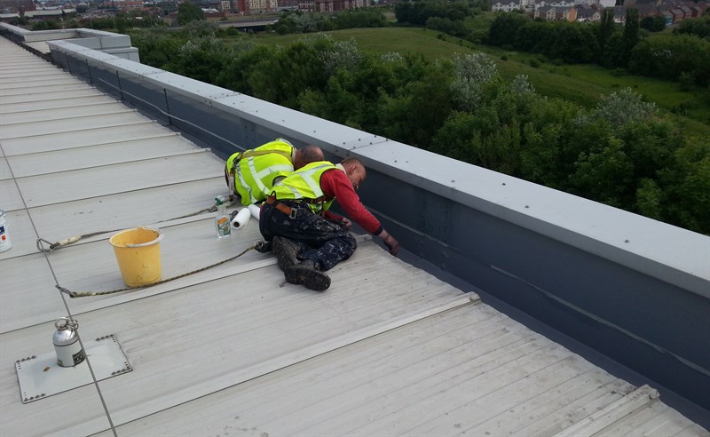 Problem: The client was about to take possession of a newly constructed office block. However, the gutters were leaking at multiple points around the building and so they were refusing to take ownership until the roof was watertight. It was thought that the joints and drain points were at fault. The main contractor had tried to seal these with a bituminous coating, which was ineffective and so needed to be removed. Belzona were approached for a liquid applied solution that could be backed by a warranty.