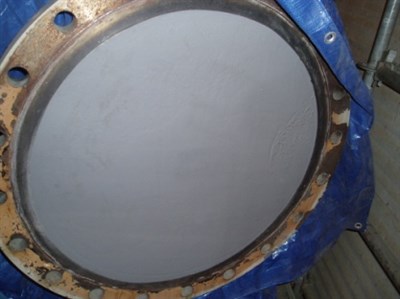 The application was carried out in accordance with Belzona Know-How System Leaflet TCC-01. The surface of the vessel was blasted to a 3-4mil profile using aluminum oxide blasting grit. The pitted areas of the vessel were rebuilt with Belzona 1511, a high temperature rebuilding compound specifically formulated for these types of applications. The rebuilt areas were brush blasted prior to over coating. After strip coating all internal weld areas and outer edges, complete vessel and man cover were protected with Belzona 1521.