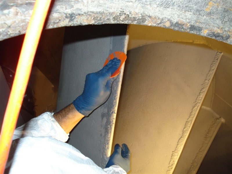 Application was carried out in accordance with Belzona System Leaflets CEP-3 and CEP-5. Belzona® 1121 was used to smooth out the edges of the vanes to rebuild metal loss. Belzona® 1321 was applied by stiff bristled brush to protect against further erosion/corosion.