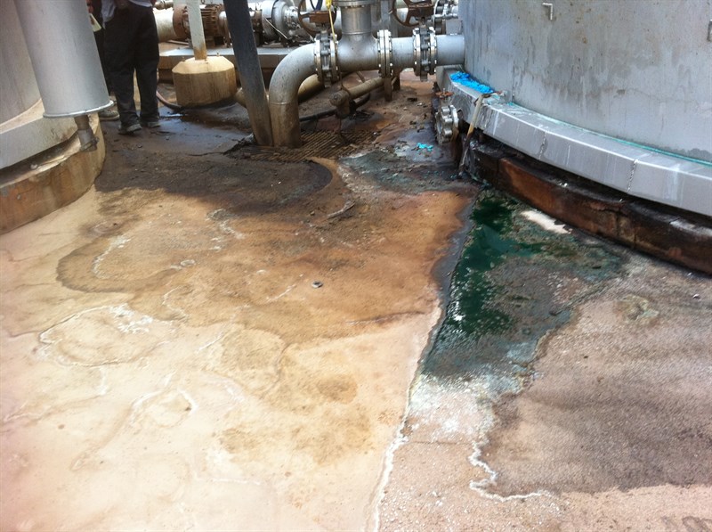 The tanks had been experiencing leakage for years with the subsequent loss of product/copper sulfate as well as the extreme damages which were taking place on the concrete containment area surrounding the tanks.
