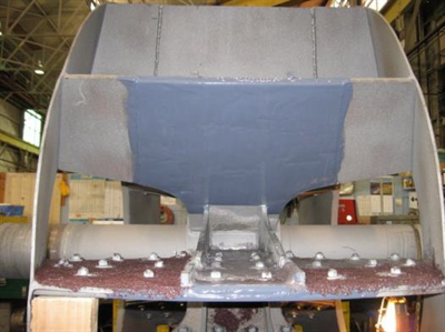 Problem: The fan moves hot, moist, particulate laden exhaust air from the dryers. The hot air erodes the replaceable hardened steel blade faces while the swirling mixture erodes the back faces of the fan blades, compromising its structural and strength.