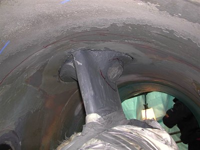 Problem: Cavitation problems had manifested themselves in the Port and Starboard Bow Thruster Tunnels. Annual repairs had been attempted with glass flake coatings and Belzona® 1341, but none had been ideal allowing metal loss to continue in the tunnel.