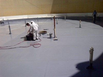 Problem: Heavy corrosion and deterioration of the floating tank roof due to sea spray and UV attack. Failure of previous coatings had led the customer to desire a more resilient product capable of withstanding the sea spray as well as long term UV exposure. The product had also to be easy to clean following build up of dirt on previously applied systems.