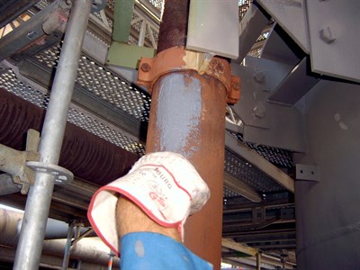 Application was carried out in accordance with Belzona System Leaflet TCC-5. As the pipe was in hot service only minimal surface preparation could be carried out to remove the exsisting coating. Once the pipe was returned to a sound substrate, the product was applied by brush to the hot pipework.