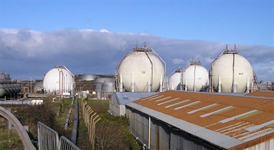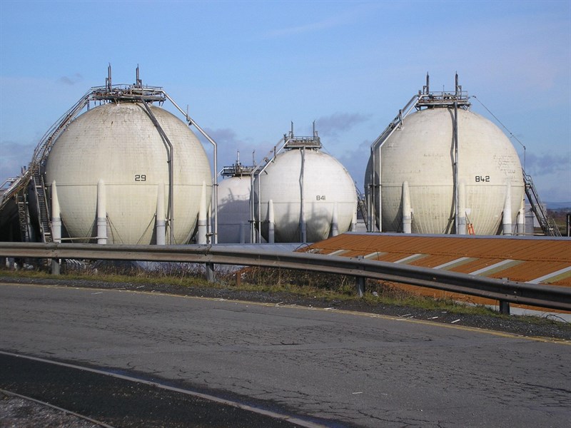 Pressurized LNG storage spheres.