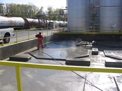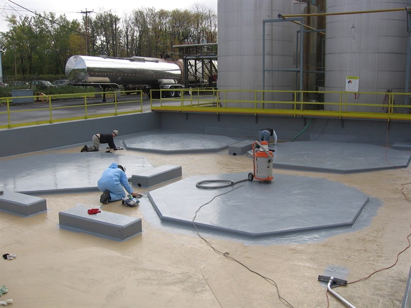Problem: Protective lining required to isolate concrete from minor and major chemical spills.