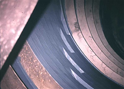 Problem: Severe corrosion including some small holes, due to soda concentration in the paper.