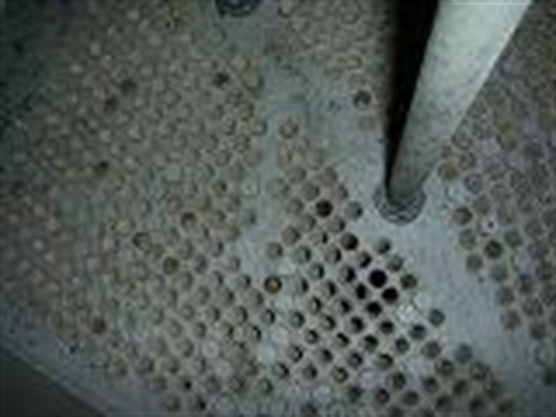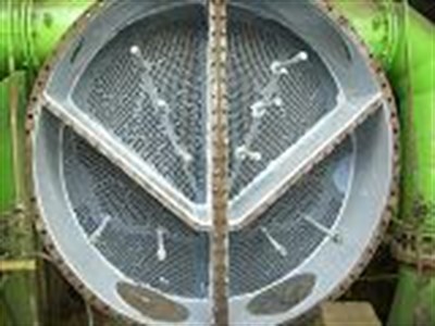 Problem: Corrosion/erosion on the turbine condensers (heat exchangers) after years of operation. Originally un-lined, extensive bimetallic corrosion had occurred between brass tubes and carbon steel tube sheets.
