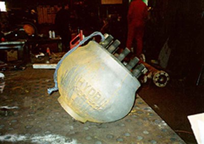 Pulsation dampeners handling a mixture of brine and drilling mud at temperature of 100°C and 350 bar pressure.