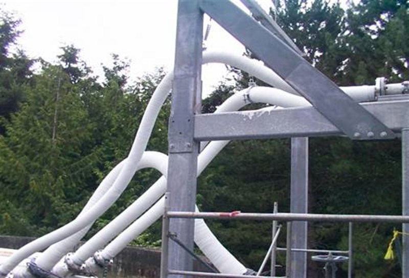 Flexible rubber transfer pipes on digester