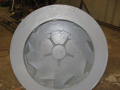 Application was carried out in accordance with Belzona Know-How System Leaflet FBC-2 and the IFU for Belzona 5891. Fan was grit blased with sand, cleaned with Belzona 9111 and two coats of Belzona 5891 applied.