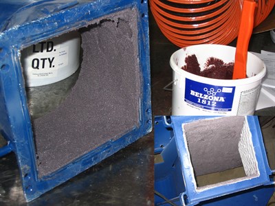 The application was carried out in accordance with Belzona Know-How System Leaflet SHM-8. Expanded metal was tack welded into position to assist rebuilding with Belzona® 1812. Belzona® 2111 found to give improved protection on high wear areas.
