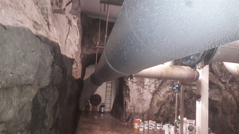 Problem: Severe corrosion on these pipes externals had developed over 50 years, several unsuccessful attempts to protect the pipe had been started and ended without fully protecting the surface over the last 10 years. Humidity of 100%, constant running water from the surface and no possibilty to gritblast meant conditions were not ideal for a coating application.