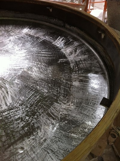 The same problem occured on another vibratory screening machine in 2012. Belzona solved it and the machine is still in good condition. The application was carried out during weekend, which enabled start of production on Monday. Because of cold weather, in order to reduce cure time, extra heat was provided with electrical heaters. All alternatives were time consuming and unnaceptable to the customer.