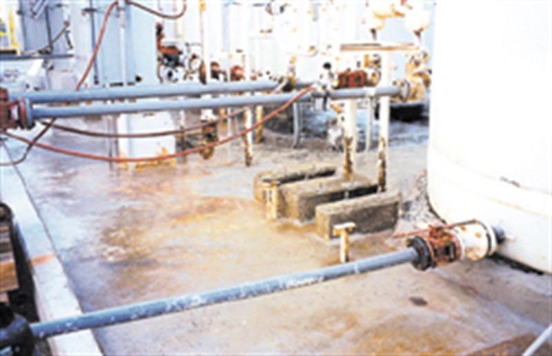 Problem: Repetitive exposure to concentrated hydrochloric and hydrofluoric acids, which eroded the concrete substrate.