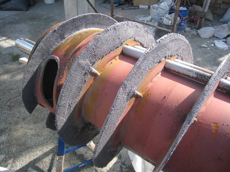 Problem: As part of its operation in a treatment plant's slurry clarifier, the screw conveyor was transporting dehyrdated slurries. The hard particles in the slurry were causing abrasion of the conveyor blades.