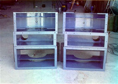 - Centrifuge components being grit blasted.