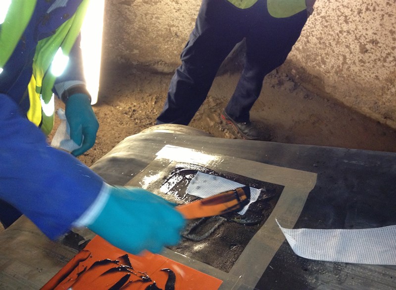 The application was carried out in accordance with Belzona Know-How system leaflet SHM-1, the tear was patched using Belzona® 2311 incorporating Belzona® 9341 (reinforcement tape).