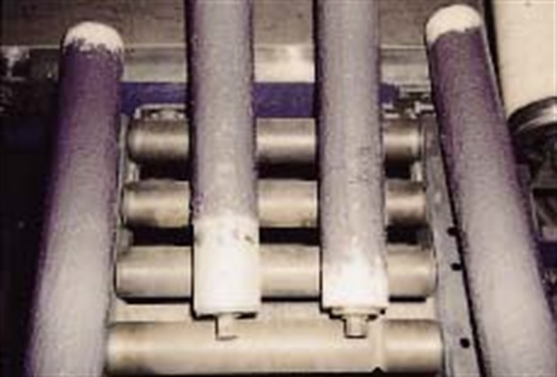 Problem: Non-skid tape was used on the drive rollers, but the weight of the containers peeled off the tape. Every 4 or 5 days the assembly line had to be stopped to repair the rollers.