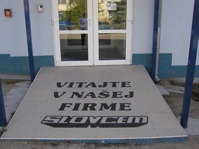 Customer achieved a quick, distinctive and attractive solution. The message reads "welcome to our firm Slovcem".