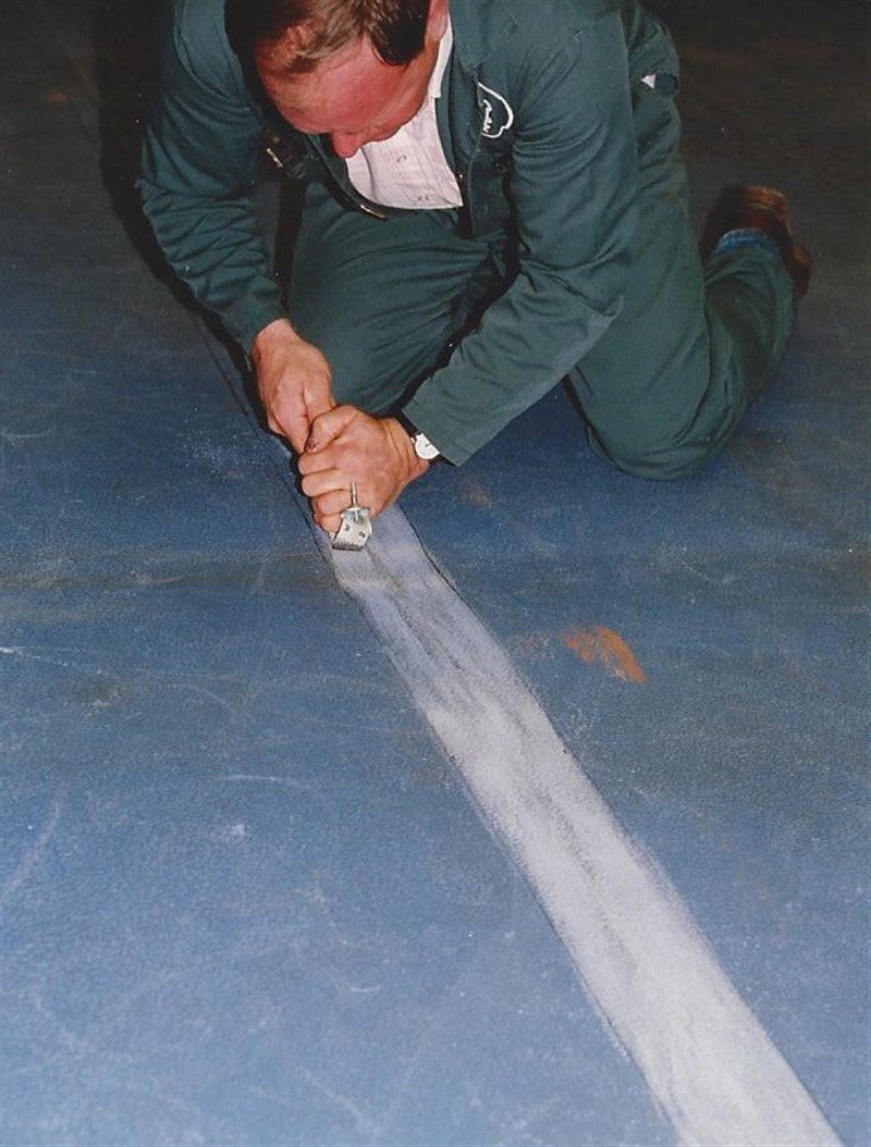 Problem: The seams on the floor in the large animal surgery room had split open, allowing bacteria to flourish underneath. The floor had to be sealed.