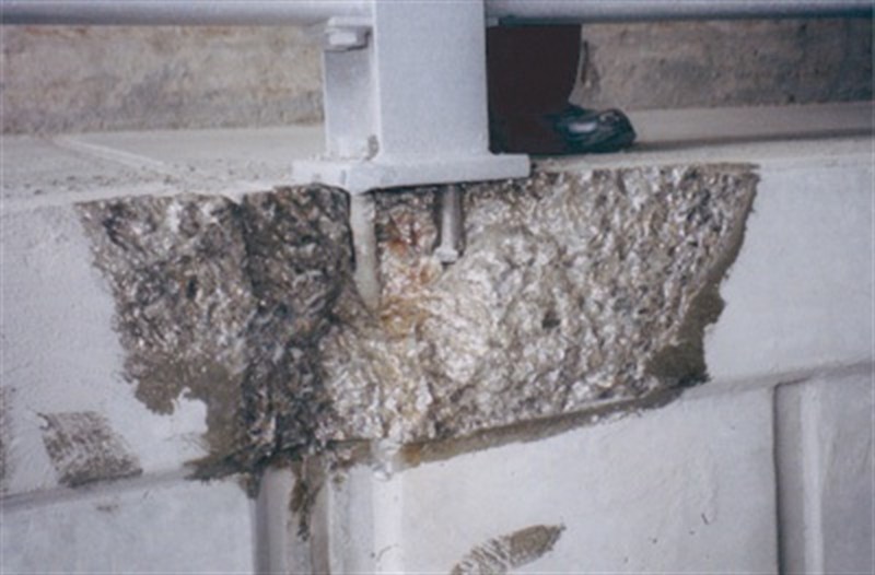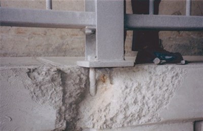 Problem: The concrete base for railings support pillars was cracked and spalled.