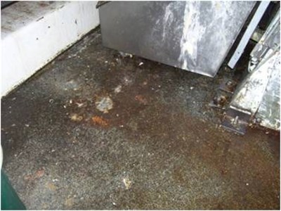 Floor area around dough making machine.