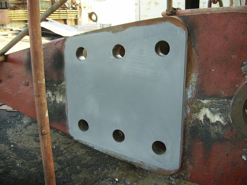 Steel plate treated with Belzona Release Agent was used to form the Belzona® 1111 on the flange face. This new face was then used to reform the rudder stock flange face.