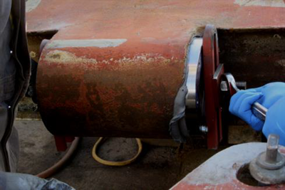 - Belzona 1111 applied and the whole assembly squeezed into place using a purpose made clamp.
