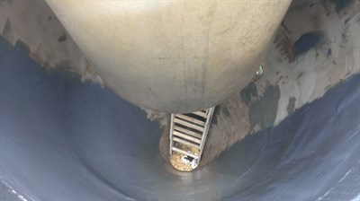 As usual, downtime was restricted and we had not been able to see interior surfaces prior to shutdown. Considerable pack rust was encountered, which required needle gunning prior to abrasive blasting. Belzona 1311 & 1321 were hand applied, as confined space offered no room for spray equipment use. Belzona 1311 was used to fill the voids and pits before a coat of Belzona 1321 was applied.
