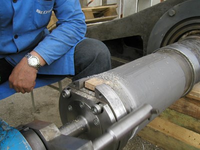 Keyway was rebuilt by welding and milling operation. Belzona® 1111 was used for shaft repair. wooden former treated with release agent was used to form keyway. This repair saved customer a lot of time, because welding and drilling would have taken several weeks.