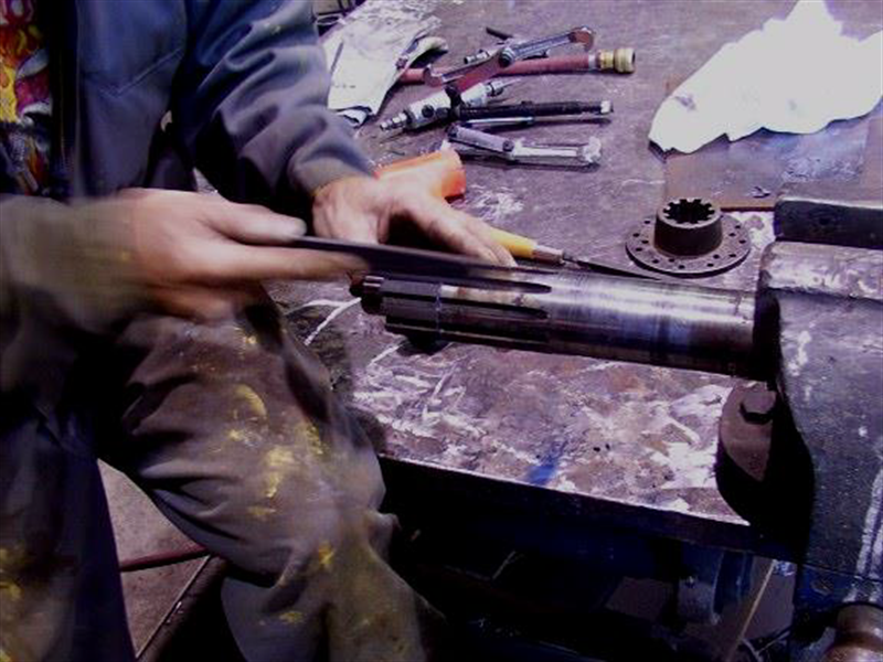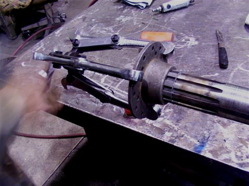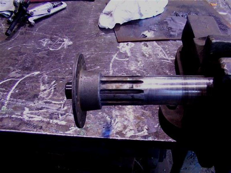 - Mounting flange in the process of being removed revealing rebuilt splines.