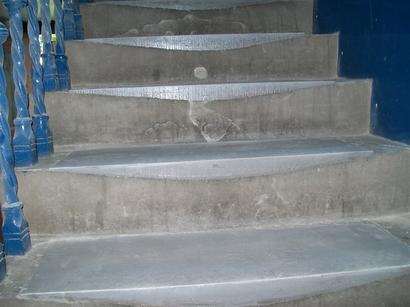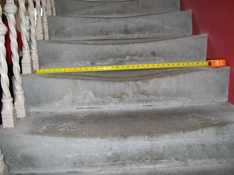 - Worn stone steps before, with wear up to 75mm deep in centre of step