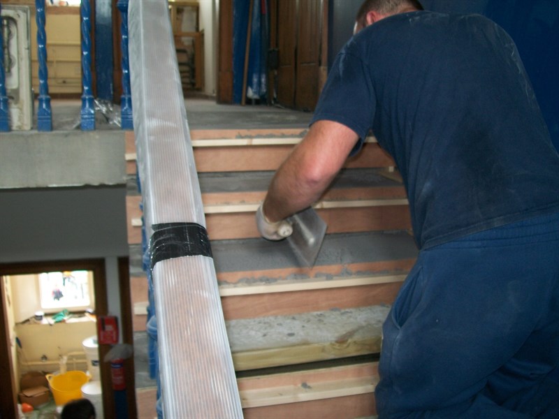 Trials had previously been carried out to rebuild the worn steps with cement based products which quickly failed. After successful trials with Belzona 4131 the College specified it for the rebuild of these 165 steps. The step rebuilding was taking place during the busy College holidays when other contractors needed to use the stairs during the day time. Therefore the fast cure time of Belzona 4131 meant the steps could be rebuilt after 16.00 when the other contractors had left for the day and be cured in time for them to be walked on at 07.00 the next morning. By using Belzona 4131 no disruption was caused to other projects going on in this building at the same time.