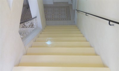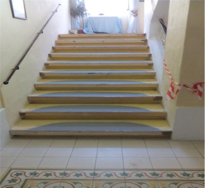 Problem: All the stone steps had become badly worn, uneven and sloping towards the front. This was a safety hazard. Due to the construction of the stone steps, it was not possible to repair with other traditional methods.